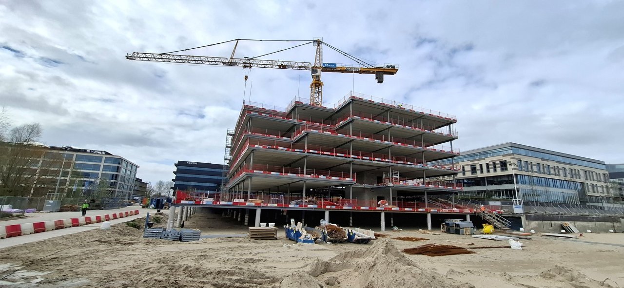Het bereiken van het hoogste punt van Campus Water in Hoofddorp is gevierd op woensdag 1 april. De bouw is tot nu toe zeer voortvarend verlopen. Zo zeer zelfs, dat de uitbreiding van het Parkdek deze maand nog kan starten in plaats van, vlak voor de Bouwvak.